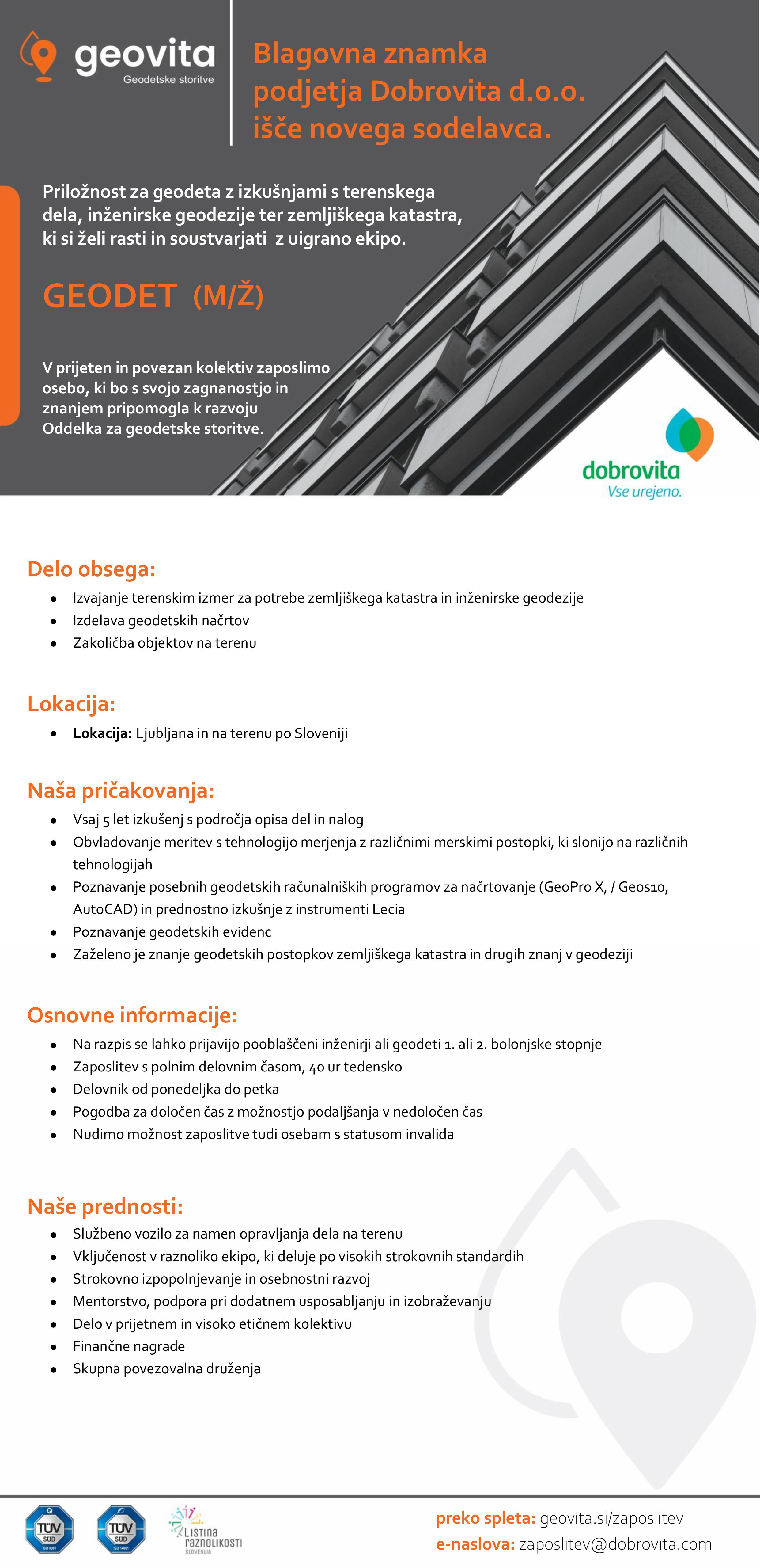 Vaša prijava za delovno mesto Geodet (m/ž) je uspešno oddana.