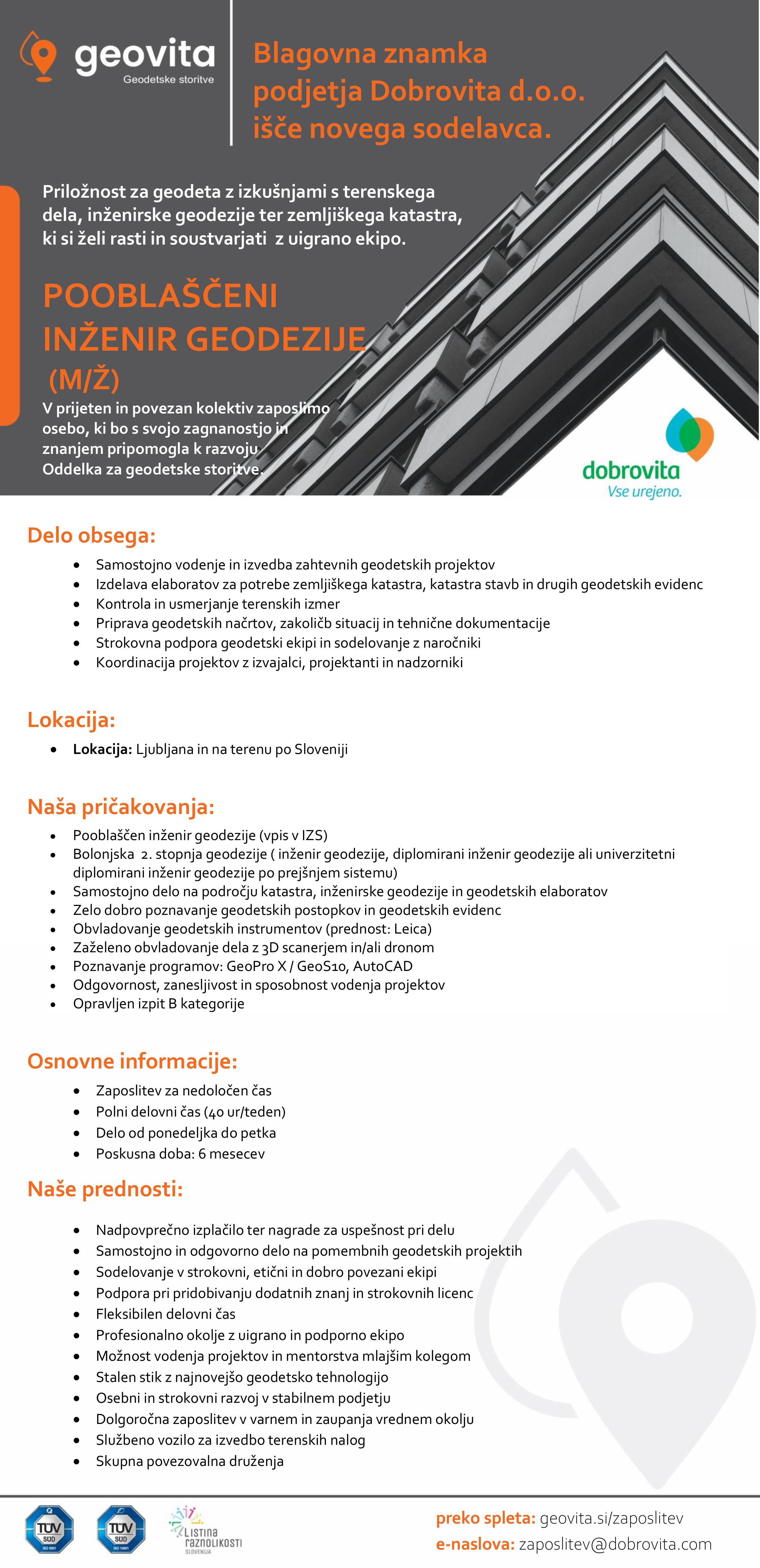 Vaša prijava za delovno mesto Pooblaščeni inženir geodezije (m/ž) je uspešno oddana.